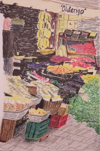 Marktstimmung in der Toskana, Tusche auf Papier