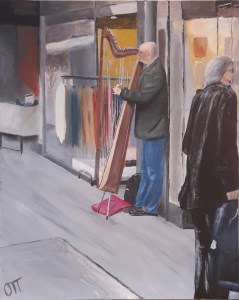 Der Harfenspieler, Acril auf Leinwand