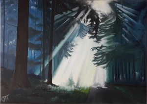 Mystische Waldstimmung, Öl auf Leinwand
