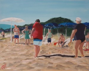 KUBB am Strand, Öl auf Leinwand
