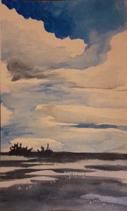 „Nach getaner Arbeit“, Aquarell auf Papier