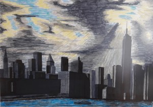 Skyline New York, Tuschestift auf Papier